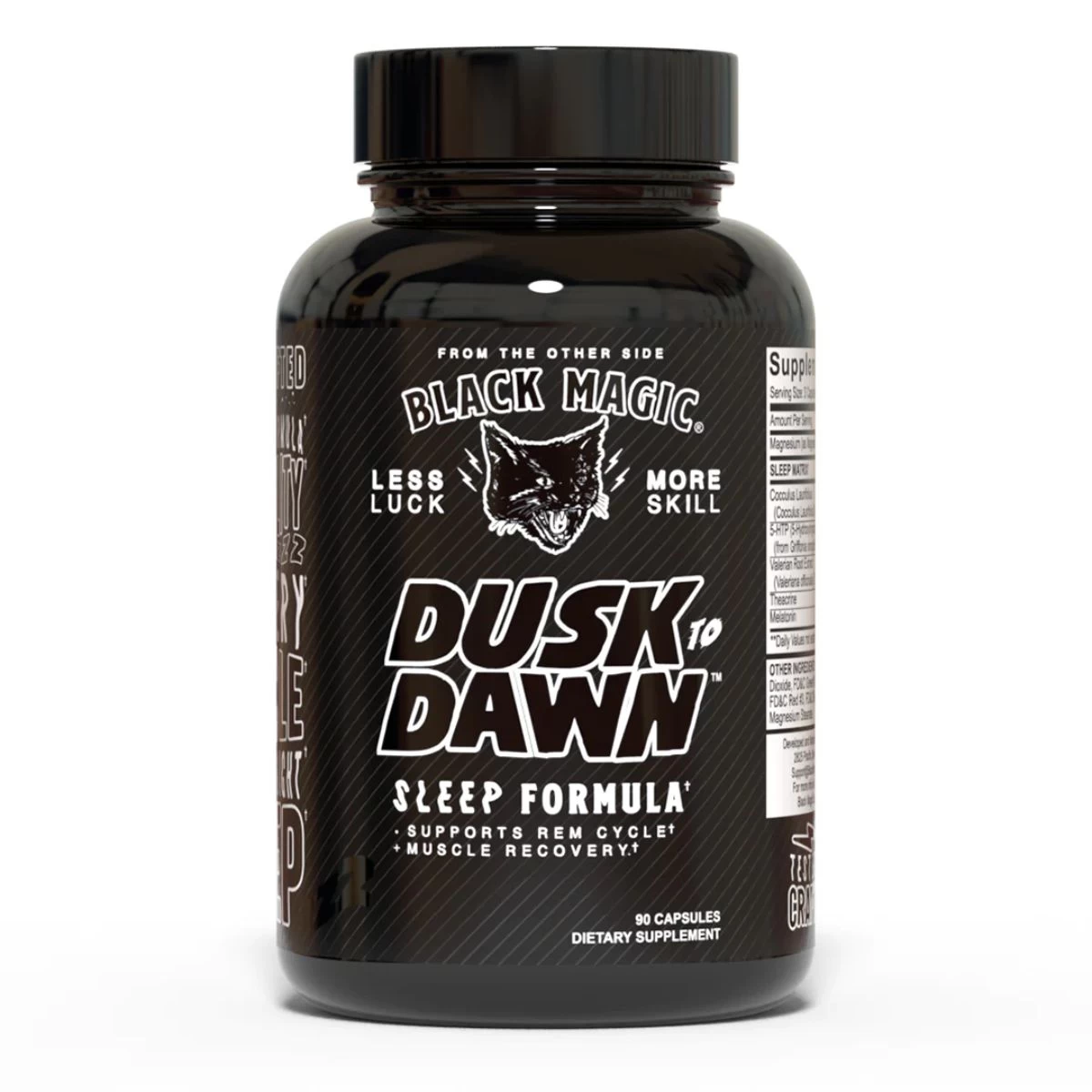 Black Magic Dusk to Dawn Sleep Enhancement Formula Highlights: Black Magic DUSK TO DAWN, a Nighttime Sleep Support formula, 100% Caffeine Free, Relax & Recover, Handcrafted Tranquility.