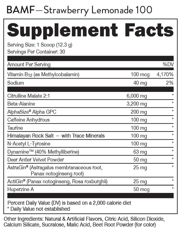 Bucked Up BAMF Black High Stimulant Nootropic Pre Workout Highlights: As the first and only TRUE nootropic pre workout, BAMF features three potent ingredients to help deliver mental sharpness and Da Vinci-level focus on top of everything you’ve come to expect from us — energy, endurance, pump, and performance.