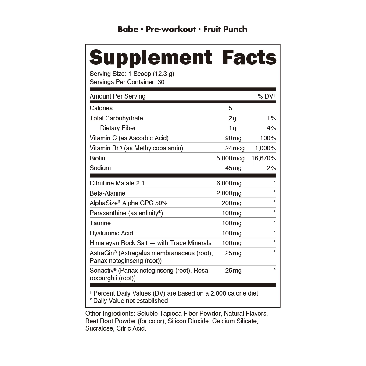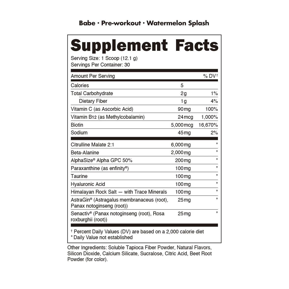 Babe Pre-Workout doesn’t stop there. Groundbreaking nootropics help increase your mental and physical stamina, empowering you to push yourself harder.* Beta-alanine helps to reduce muscle soreness and increase muscular endurance*, and biotin and Vitamin B12 form an incomparable duo to promote overall health.*
