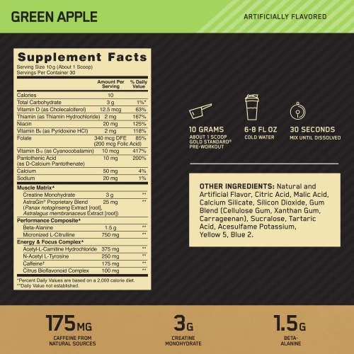 ON Optimum Nutrition Gold Standard Pre Workout Highlights: