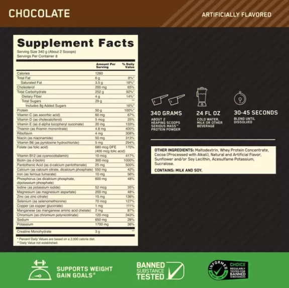 Optimum Nutrition Serious Mass Protein Highlights: