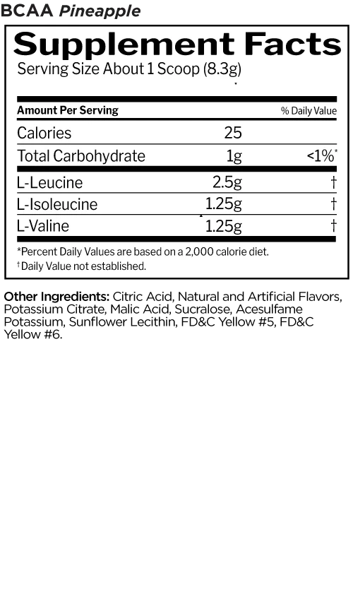 R1 BCAAs Highlights: Available in a variety of fruit flavors or as an unflavored powder that can be added to protein shakes or pre-, intra-, or post-workout formulas, BCAAs provide leucine, isoleucine, and valine to help support muscle recovery.