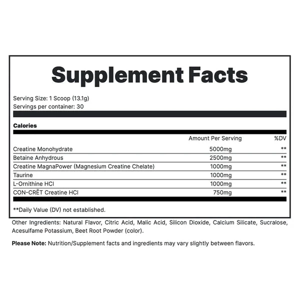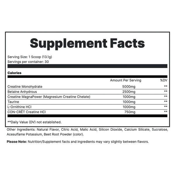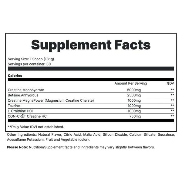 - 3 FORMS OF CREATINE FOR MAXIMUM RESULTS, INCLUDING 5G CREATINE MONOHYDRATE.
