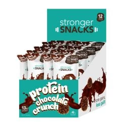 Stronger Snacks Protein Chocolate Crunch Highlights: The Protein Chocolate Crunch by Stronger Snacks is even better than the alternative you may remember from years ago. This Protein Chocolate Crunch healthy snack has real chocolate, whey, and much less sugar giving you the protein gain you need, incredible taste, and without the guilt of overindulging.