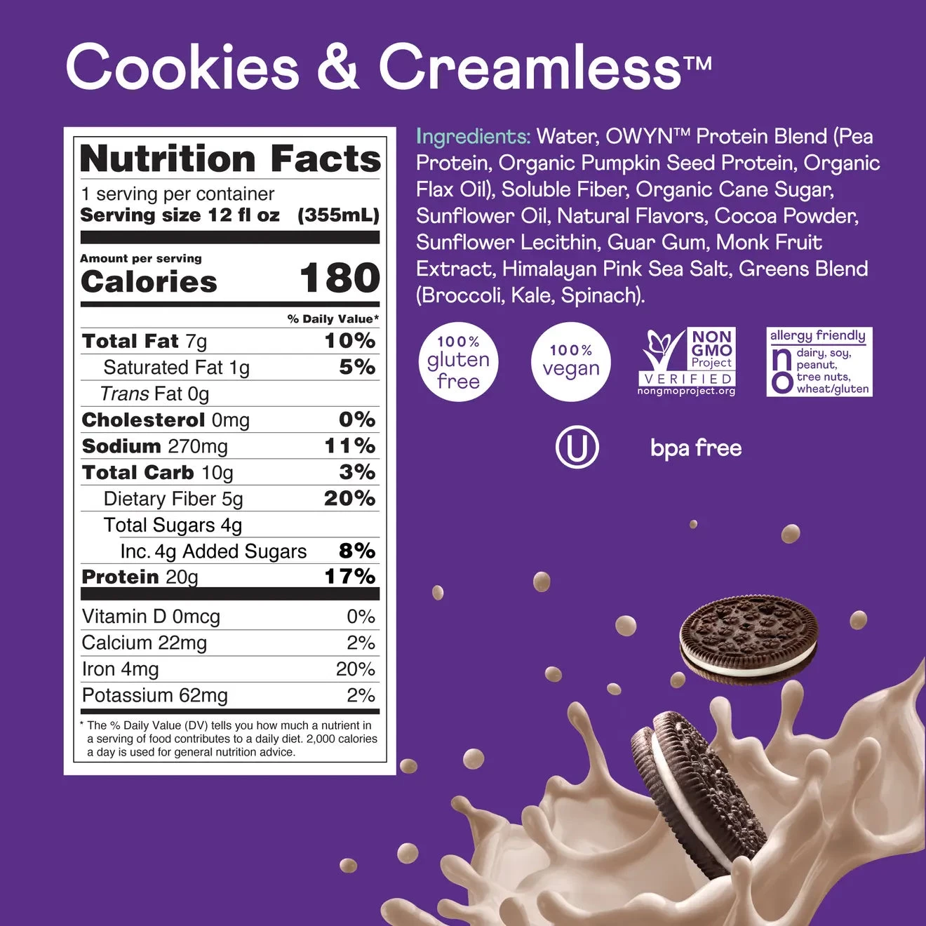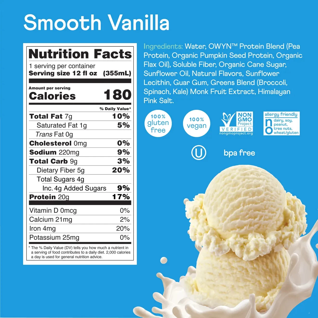 OWYN Only What You Need Vegan Plant-Based Protein Shake Highlights: is your cleanest vegan protein shake on the go. This convenient high protein shake will deliver 20g of vegan plant-based protein without artificial sweeteners.
